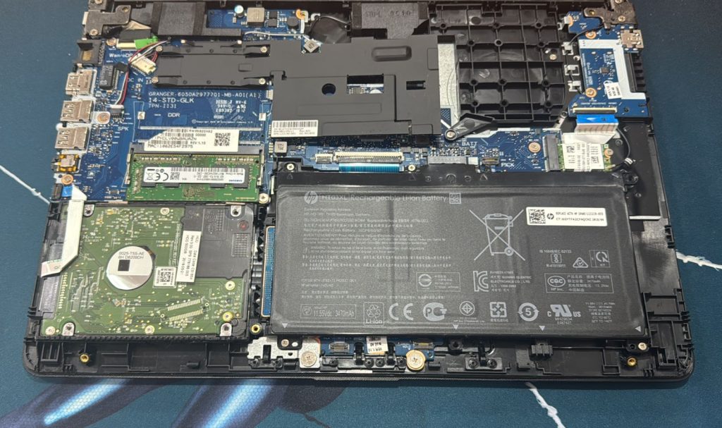 En esta fotografía podemos observar un equipo con disco duro mecánico, el cliente llego a nosotros porque su laptop estaba muy lenta y no podía realizas tareas simples , Después de un diagnostico concluimos que se debía cambiar el HDD por un SSD.