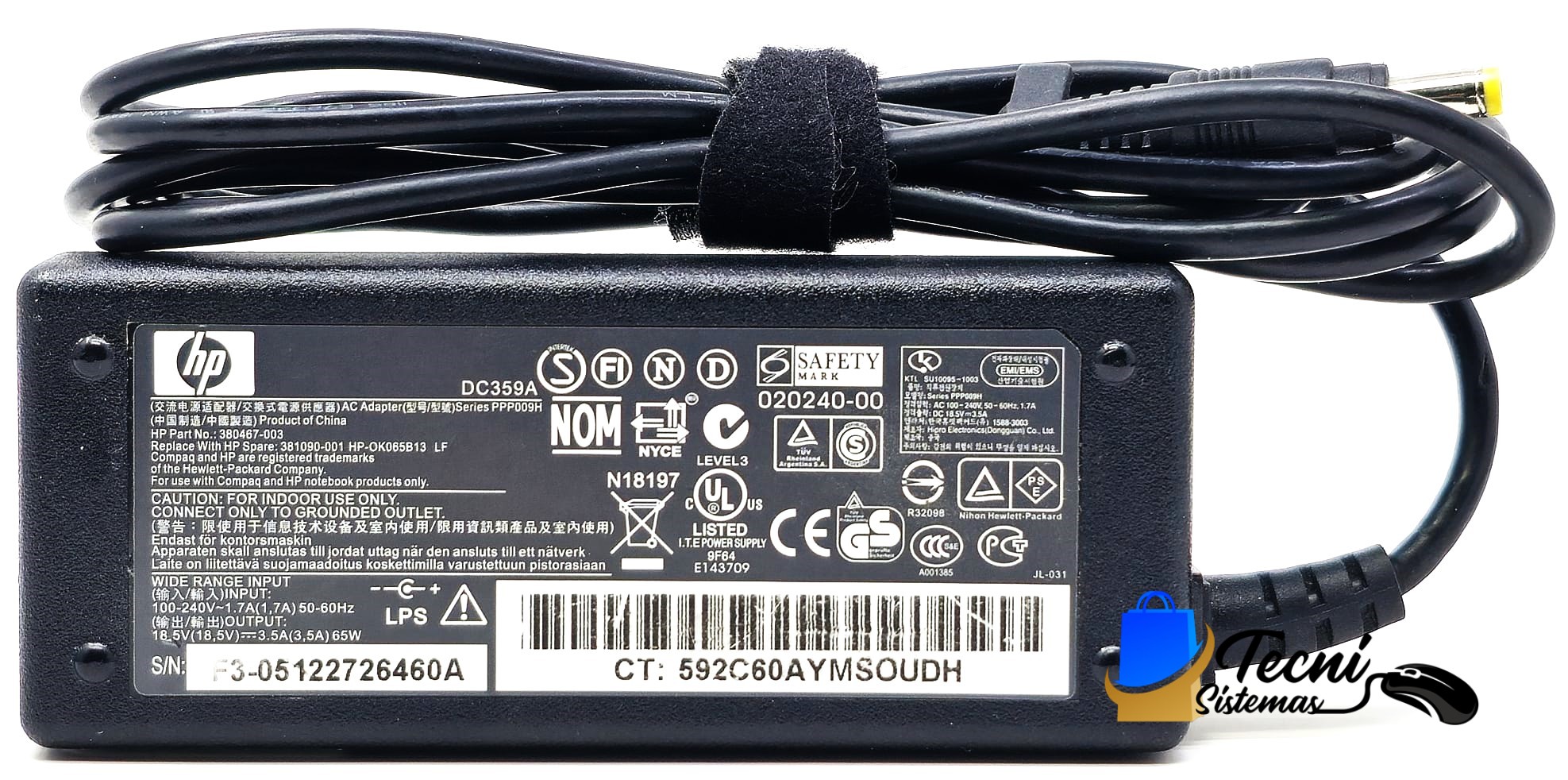 Cargador HP PA-1650-02C 65W 18.5V 3.5A Punta 1.7mm (Punta Amarilla)