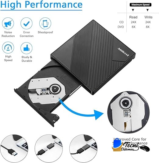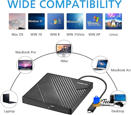 Unidad de DVD Externa USB 3.0 y USB-C Grabadora CD/DVD +/-RW Slim para Laptop y PC Windows